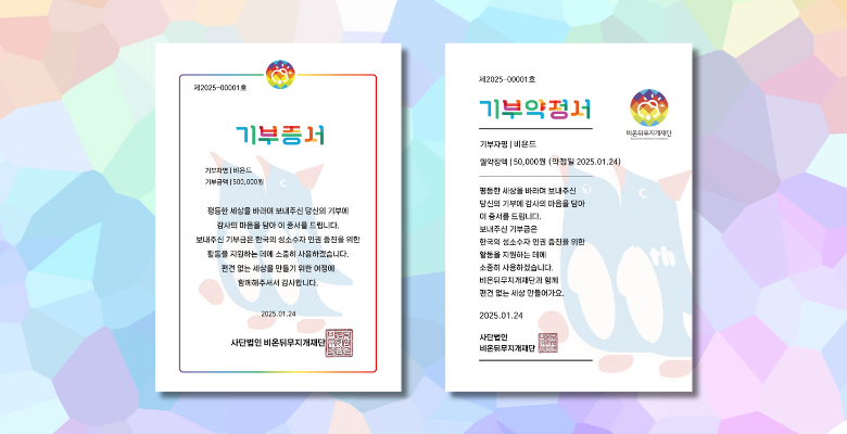 ์๋ ์จ๋ผ์ด ๋์์ ์ ๊ณ์ ์ด์ด๊ฐ ์ ์๋๋ก ์ง๊ธ ๋ฐ๋ก ๊ธฐ๋ถ์ ๋์ฐธํด์ฃผ์ธ์. ๊ธฐ๋ถํด์ฃผ์ ๋ชจ๋ ๋ถ๋ค๊ป ์๋ก ๋ฆฌ๋ด์ผํ ๊ธฐ๋ถ์ฆ์๋ฅผ ๋ณด๋ด๋๋ฆฝ๋๋ค. ๋ํํ๋ ๊ธฐ๋ถ์ฆ์๋ฅผ ์ฃผ๋ณ์ ๋ง์๊ป ์๋ํด์ฃผ์ธ์!